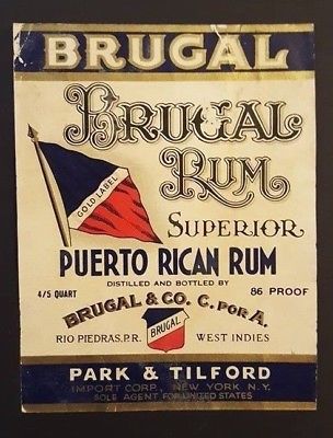 Title (ebay affiliate link): VINTAGE 4/5 QT RUM BOTTLE LABEL / RON BRUGAL PUERTO RICO / 1940''s