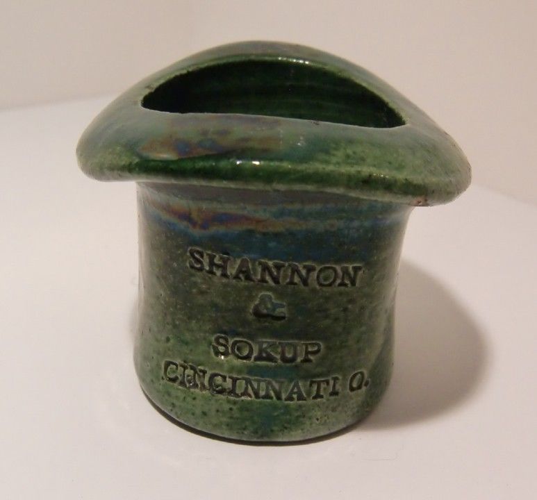 Title (ebay affiliate link): Shannon & Sokup Cincinnati advertising ceramic hat, green1.75" tall