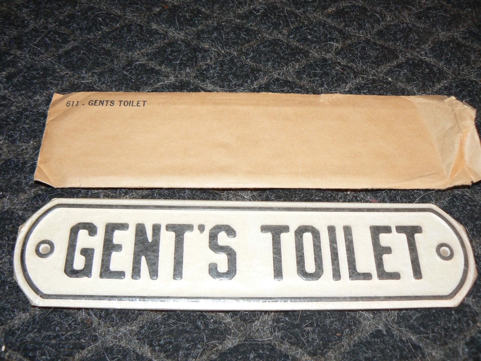 Title (ebay affiliate link): VINTAGE GENTS TOILET METAL EMBOSSED SIGN MINT NEVER USED NR