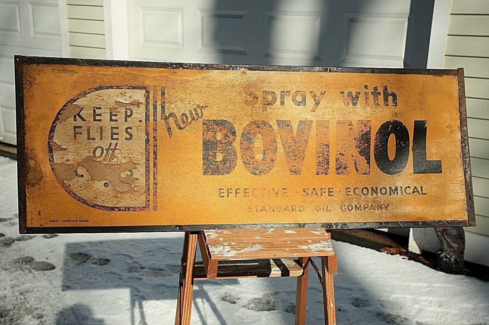 Title (ebay affiliate link): Vintage BOVINOL farm sign coke pepsi grocery metal frame with cardboard gas