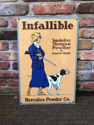Title (ebay affiliate link): VINTAGE HERCULES GUN POWDER COMPANY W FEMALE MODEL+ DOG 16" METAL AMMO GAS SIGN