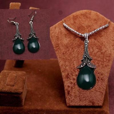 2PCS New Design antique silver Green Necklace eardrop Jewelry Set Women''s gift
