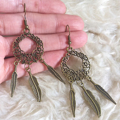 Title (ebay affiliate link): NEW Womens Antique-Color Pattern Hollow Charm Metal Feather Dangle Hook Earrings