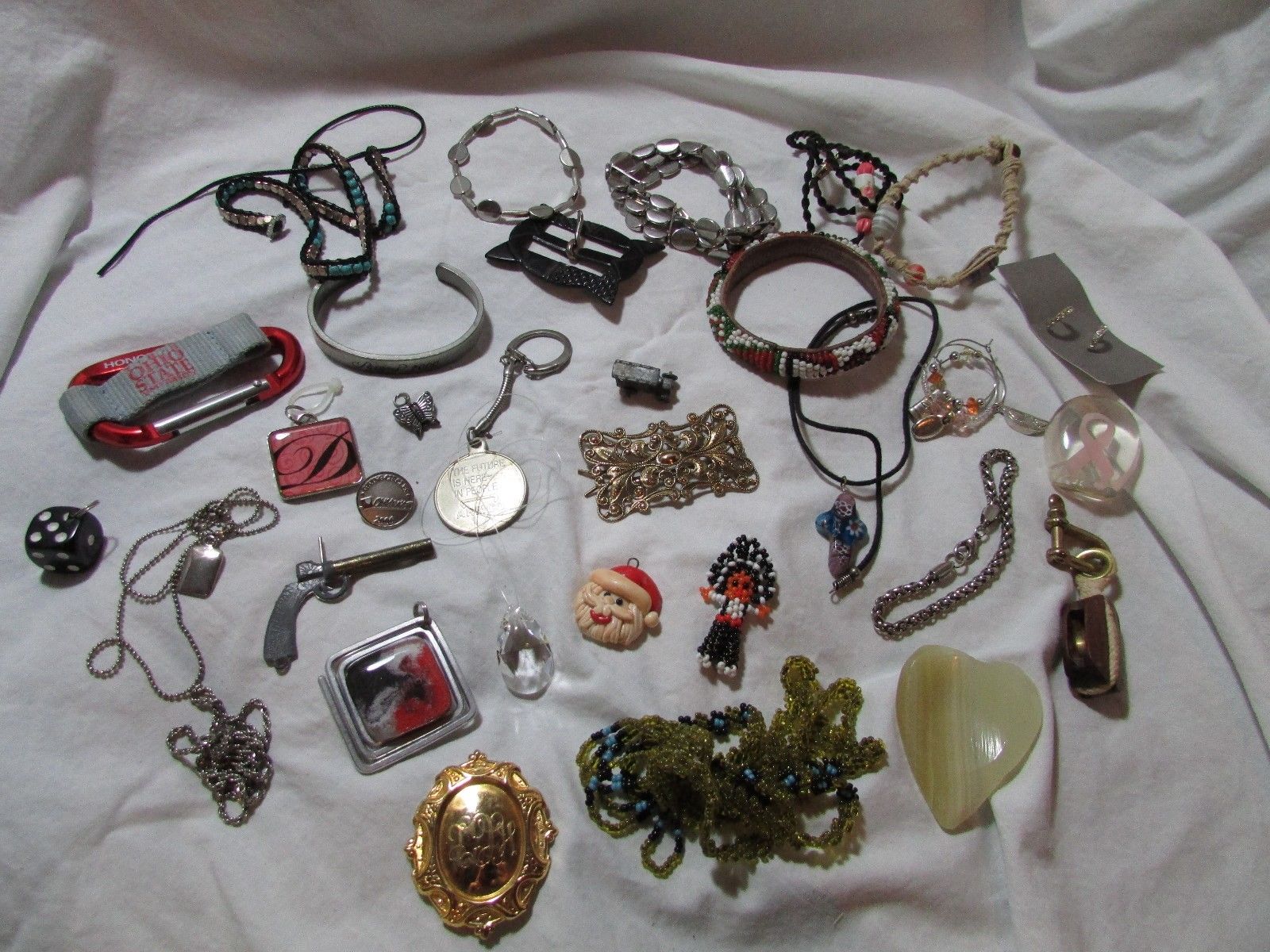Vintage to Now 35pc Lot Jewelry, Keychain, Stone, Pendant, Bead, Barrett, Charms