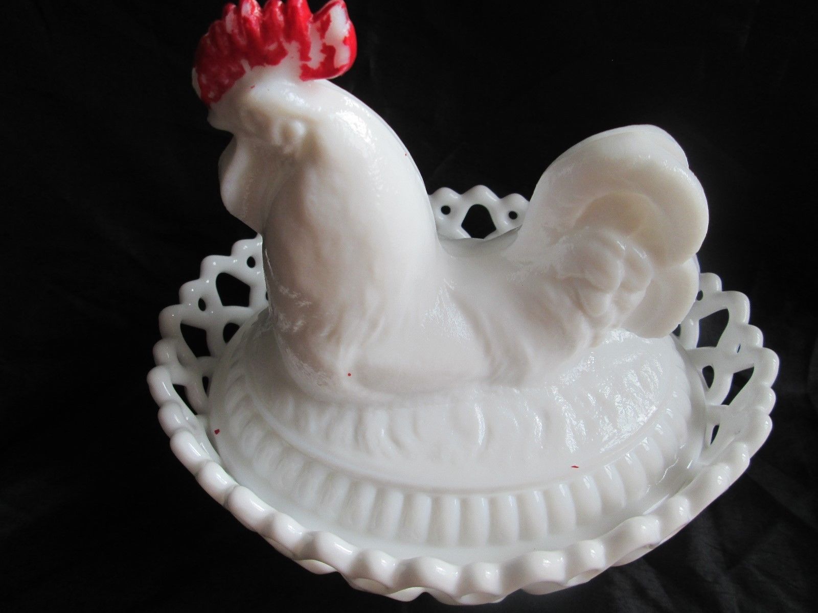 Title (ebay affiliate link): Imperial Milk Glass Chicke/Hen/Rooster on Nest Cvered Dish
