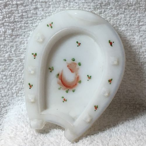 Title (ebay affiliate link): Vtg Milk Glass Horseshoe Trinket Dish Ashtray? Handpainted