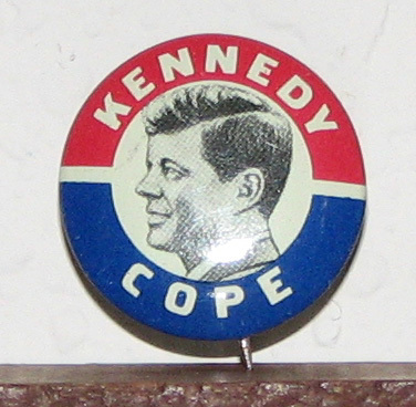 (JFK) Kennedy Cope Pinback Button, Decent Condition