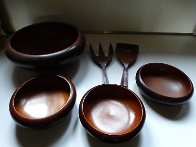 Title (ebay affiliate link): LOT VINTAGE SOLID MAHOGANY HAND MADE BOWLS WITH SALAD FORK SPOON ACID RESISTANT