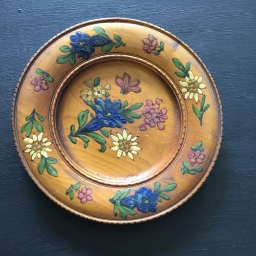 Vintage Painted Wooden Plate 9 Inch Swedish Norwegian?