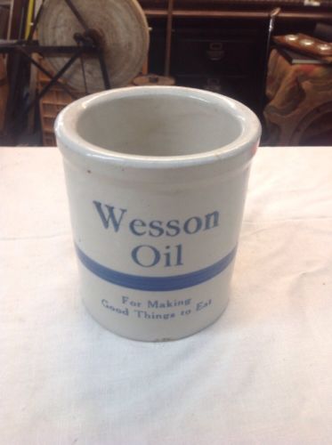 Antique Vintage Wesson Oil Stoneware Advertising Beater Jar Crock Blue 4.5Diam