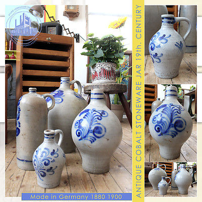 Title (ebay affiliate link): 4 ANTIQUE COBALT STONEWARE JAR 19th. CENTURY BLUE BIRDS DECORATION VERTICAL LOOP