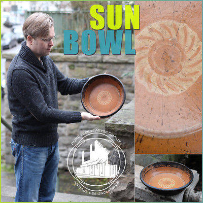 NICE ANTIQUE SUN DESIGN POTTERY FARMER BOWL 1830`50 REDWARE PATTERN HAFNERWARE