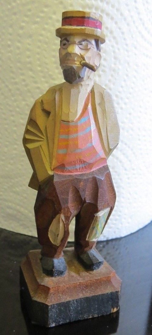 Title (ebay affiliate link): Vintage Hand Carved & Painter Wooden Carved MAN w/ hat cigar patches beard 4"