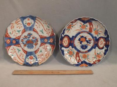 2 ANTIQUE JAPANESE IMARI MEIJI PERIOD 8.5" SCALLOPED PLATES #4 FLOWERING URNS