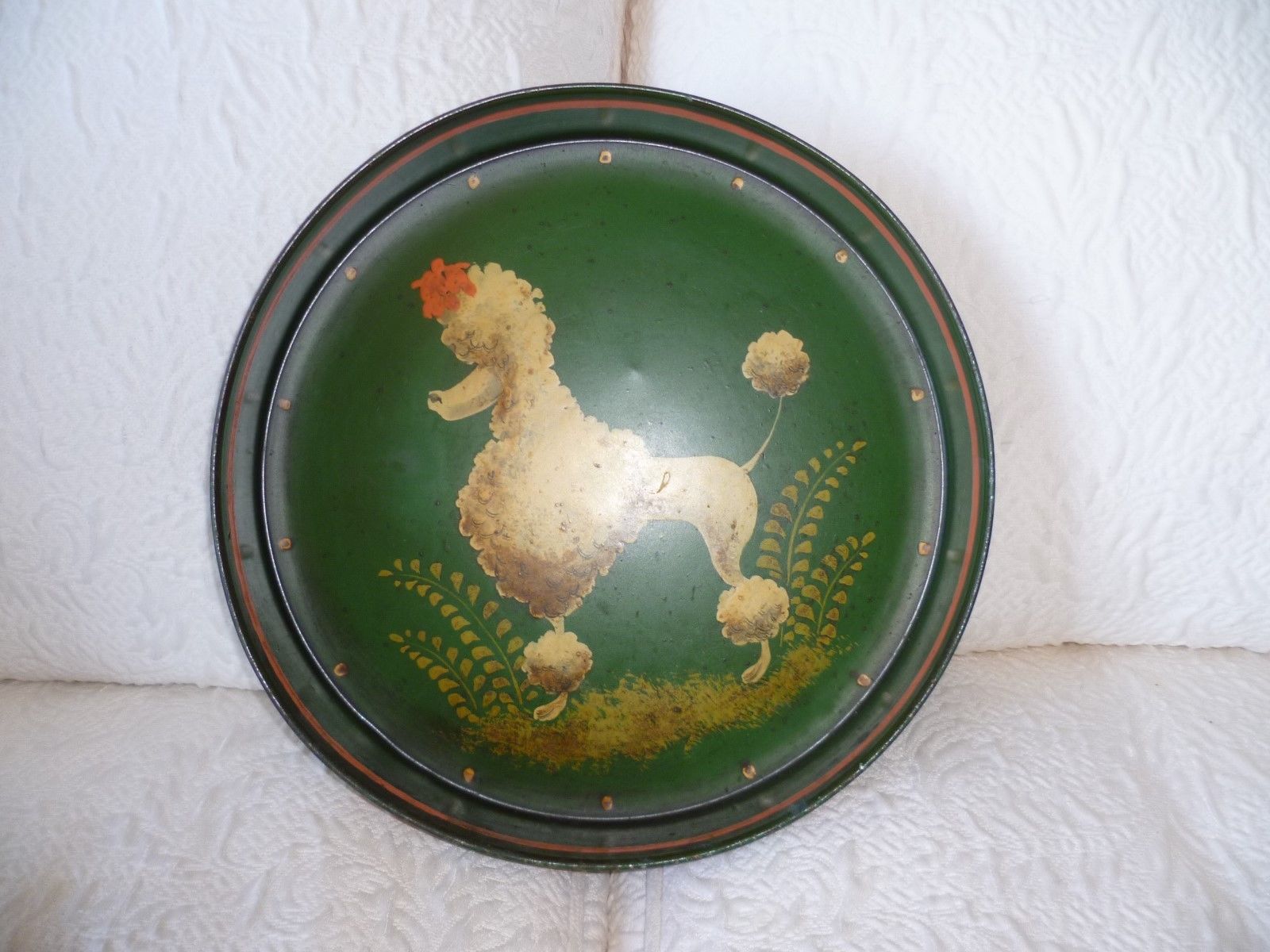 SIGNED PETER OMPIR TRAY, POODLE, WONDERFUL COLORS