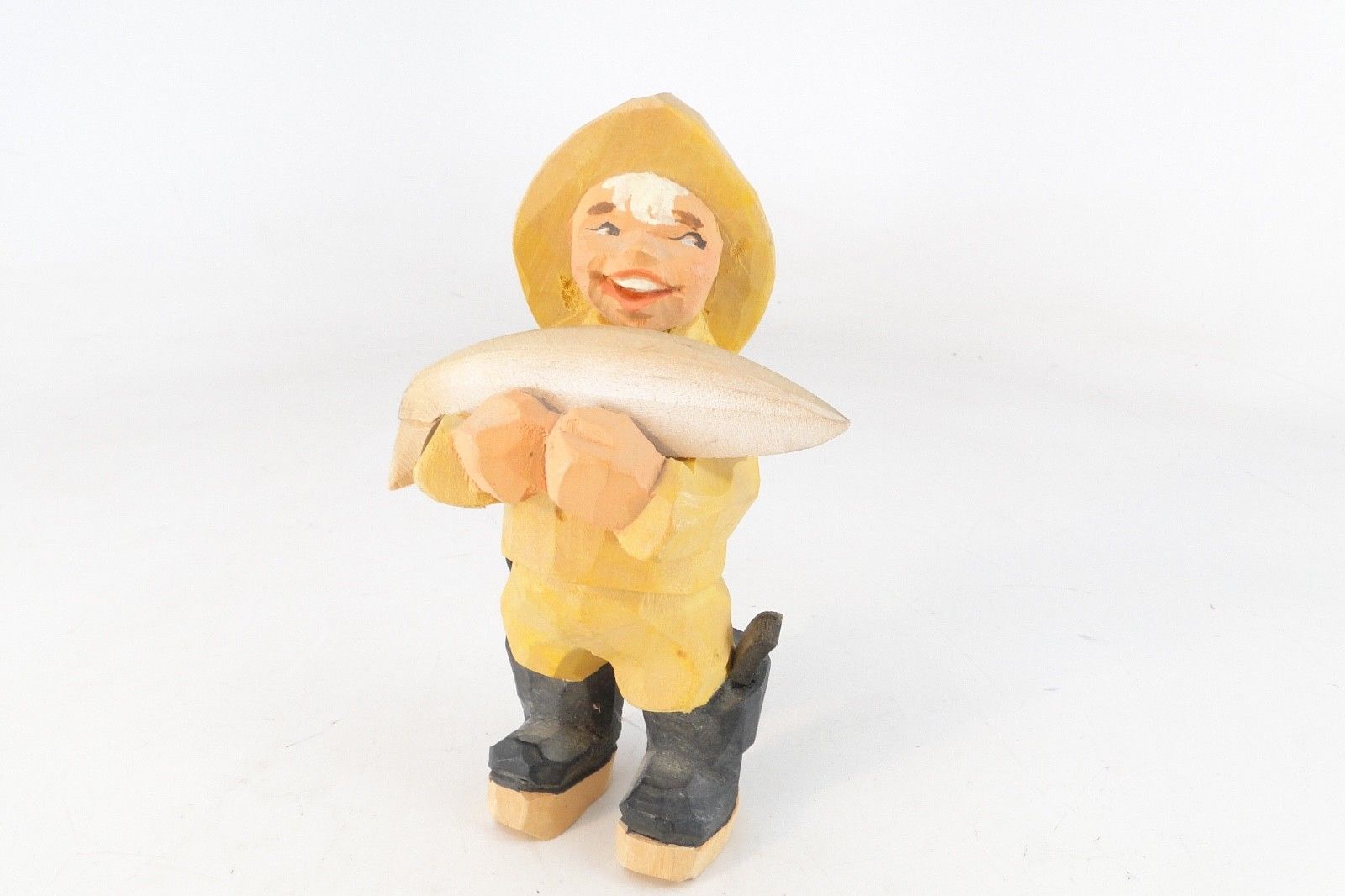 RARE VINTAGE Norwegian Henning Hand Carved Wooden FISHERMAN 5.5"
