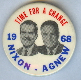 Title (ebay affiliate link): NIXON, AGNEW TIME FOR A CHANGE 1968 JUGATE PIN