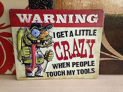WARNING GET A LITTLE CRAZY EMBOSSED METAL SIGNN SHOP GARAGE WALL DISPLAY