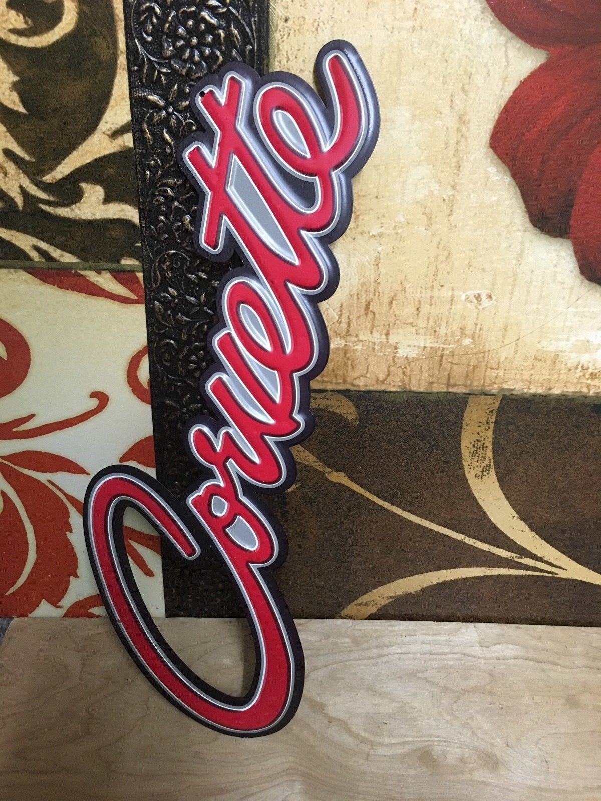 Title (ebay affiliate link): LARGE CHEVROLET CORVETTE SCRIPT EMBOSSED METAL SIGNN GM CHEVY SALES SHOP DISPLAY