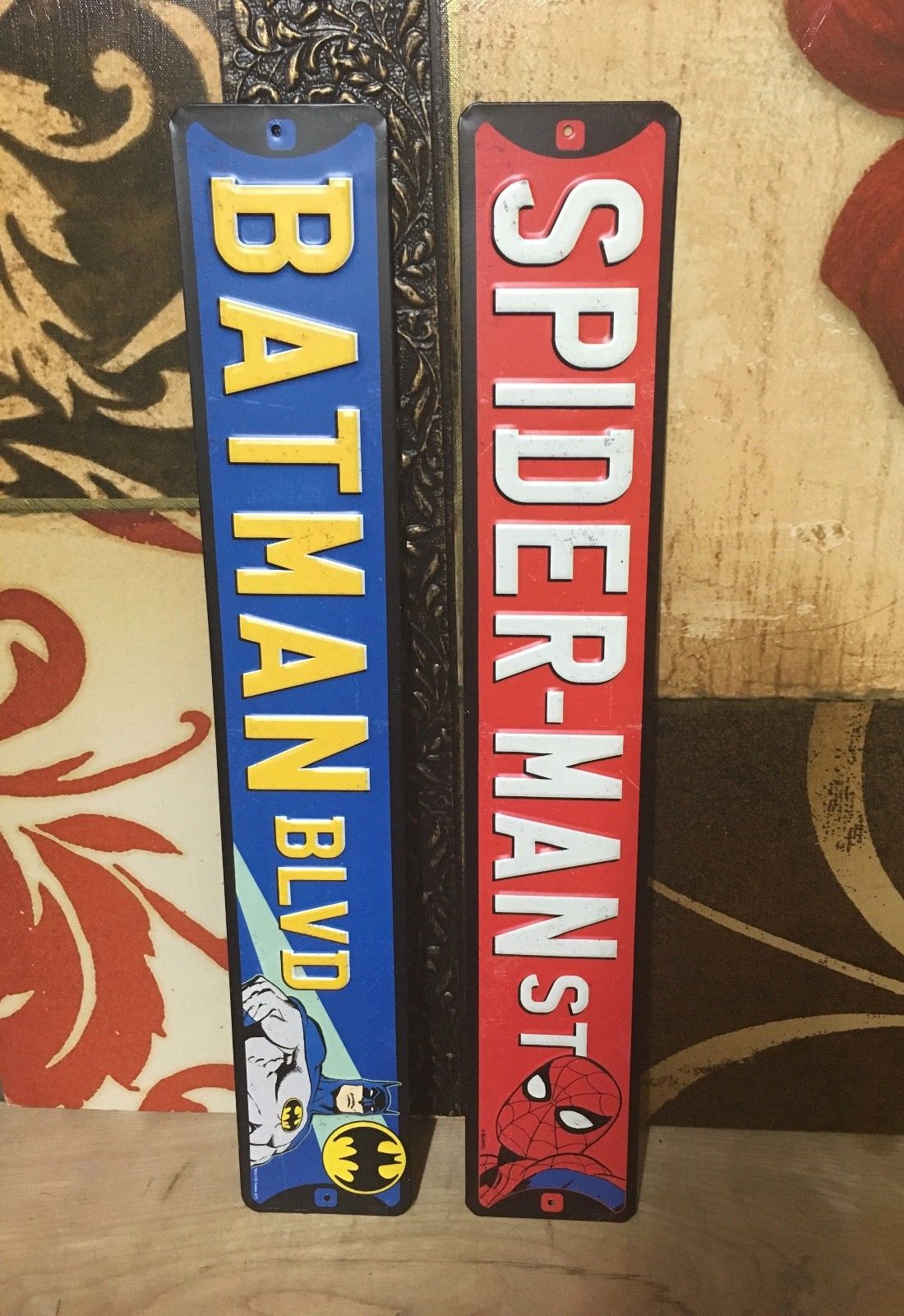 Title (ebay affiliate link): SET OF 2 LARGE 20" BATMAN & SPIDER-MAN BLD EMBOSSED METAL SIGNN GARAGE MAN CAVE