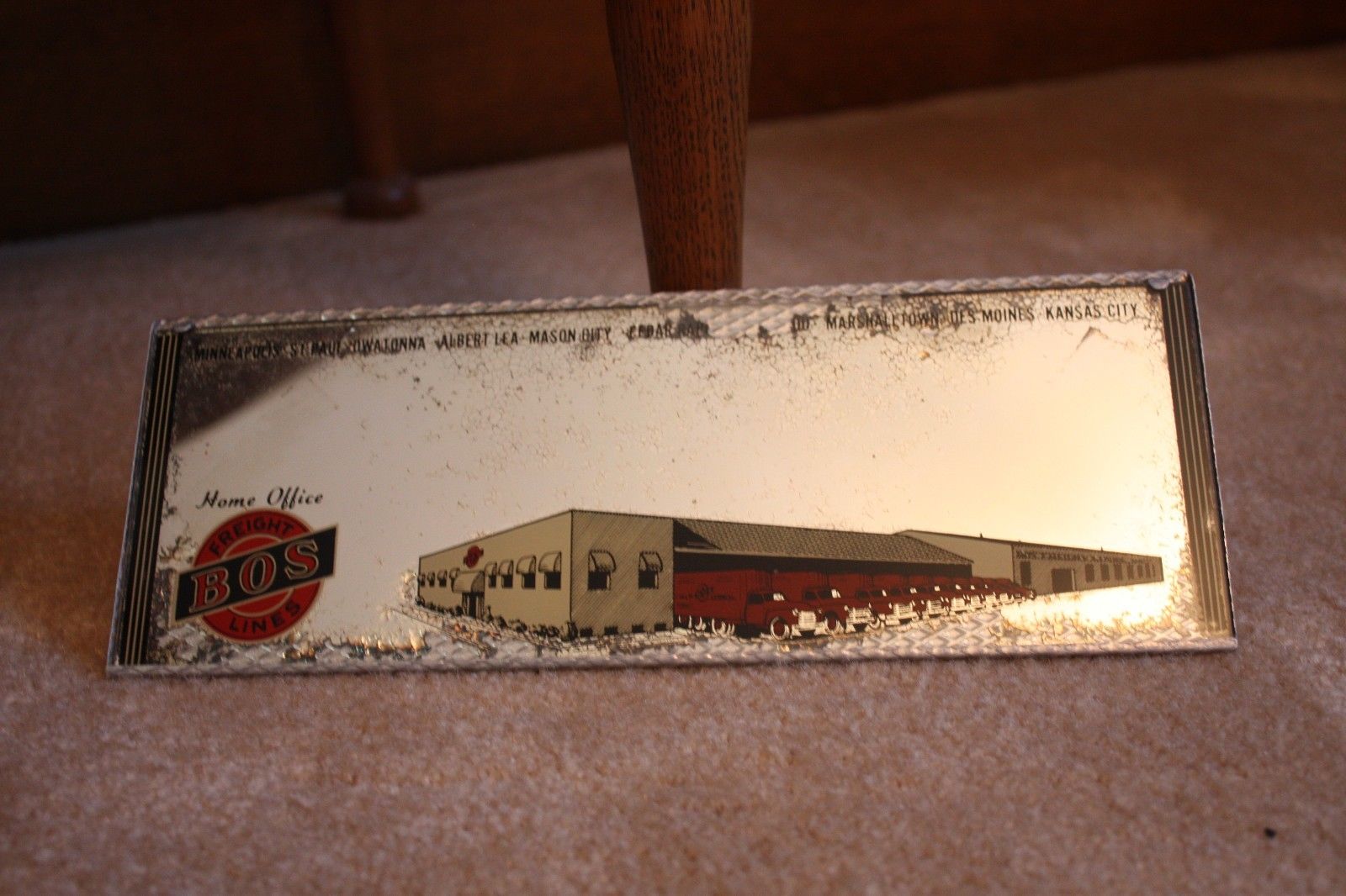 VINTAGE BOX FREIGHT LINES ALBERT LEA MASON CITY DES MOINES ADVERTISING MIRROR