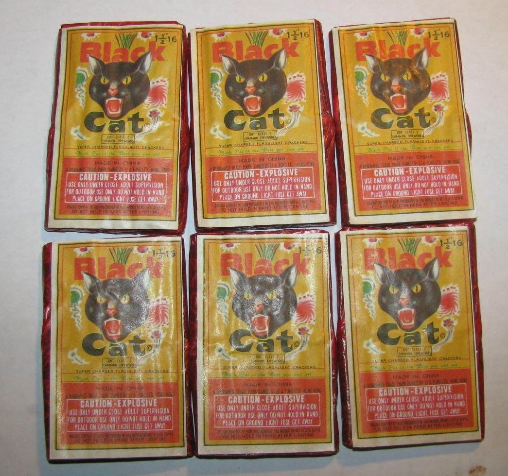 6 VINTAGE 1 1/2" 16 COUNT BLACK CAT FIRECRACKER LABEL