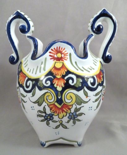 Title (ebay affiliate link): VTG French Faience Rouen Double Handled Vase Desvres Quimper Fait a Main France