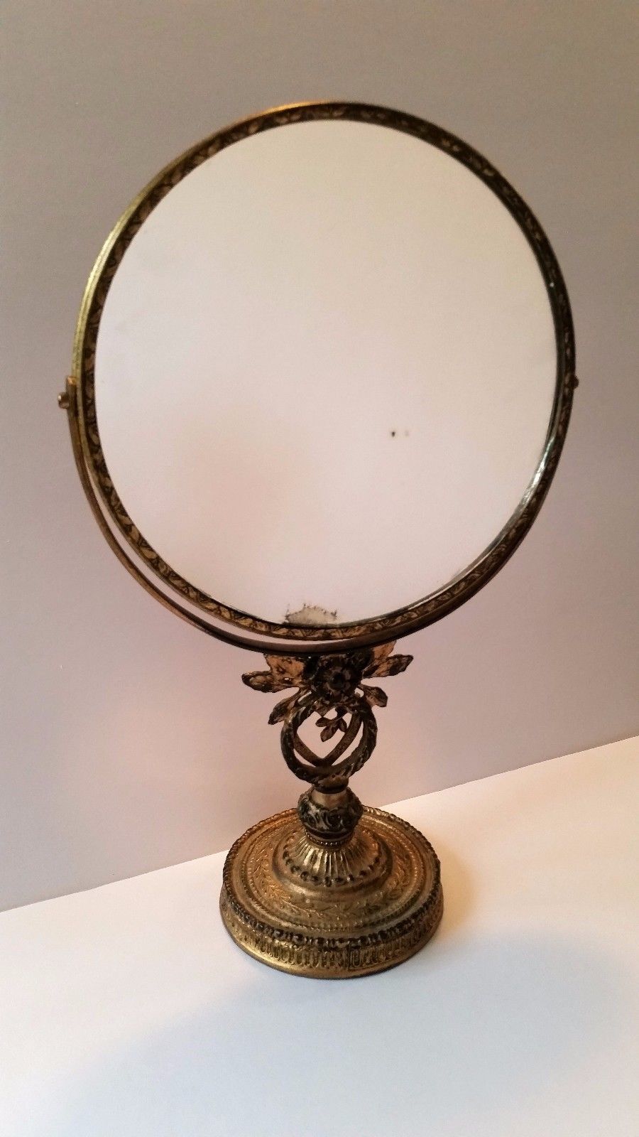 Title (ebay affiliate link): Vintage Matson Style Ornate Filigree Brass Vanity Swivel Double Side Mirror