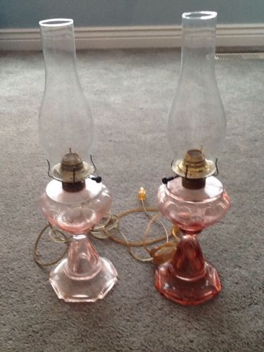 Title (ebay affiliate link): Set 2~Vintage Depression Glass Pink Electric Oil Lamp Beaded Queen Of Hearts