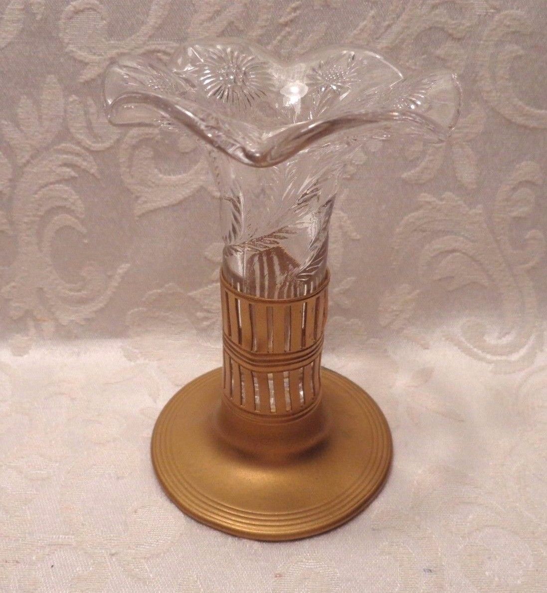 Title (ebay affiliate link): Antique Forbes Silver Co. USA 123 Trumpet Glass Vase with Gold Metal Stand
