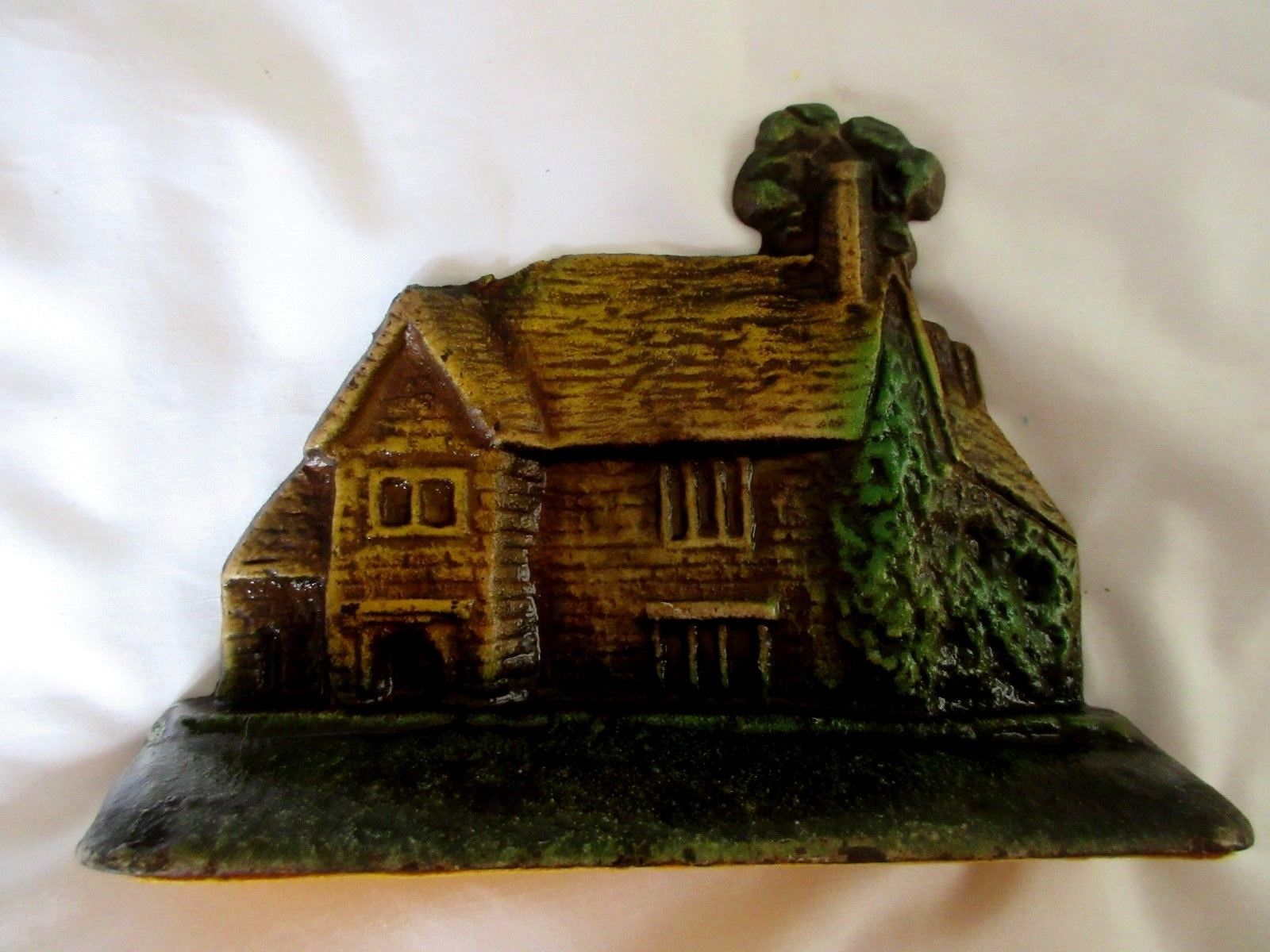 Rare Cast Iron Doorstop or Bookend Log Cabin House No. 37