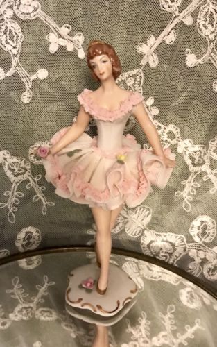 Vintage DRESDEN Ballerina FIGURINE 7" Tall White & Pink