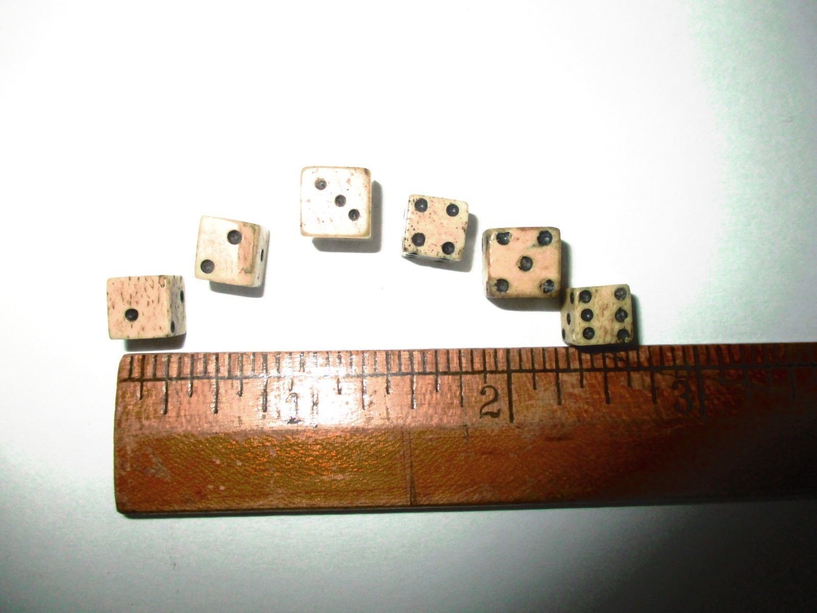 TINY Antique Bone Dice-6 die 1/4" to 3/8"-Civil War Era HAND CARVED POCKET DICE