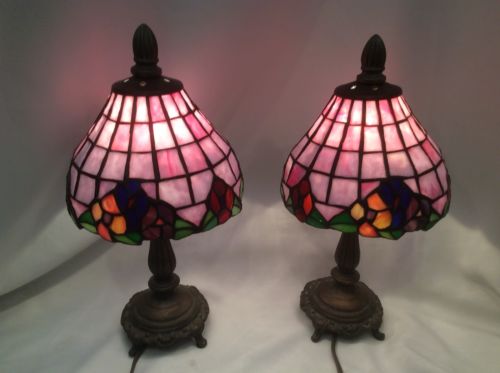 Pair Of Vintage Tiffany Style Lamps W/Stained Glass Shades