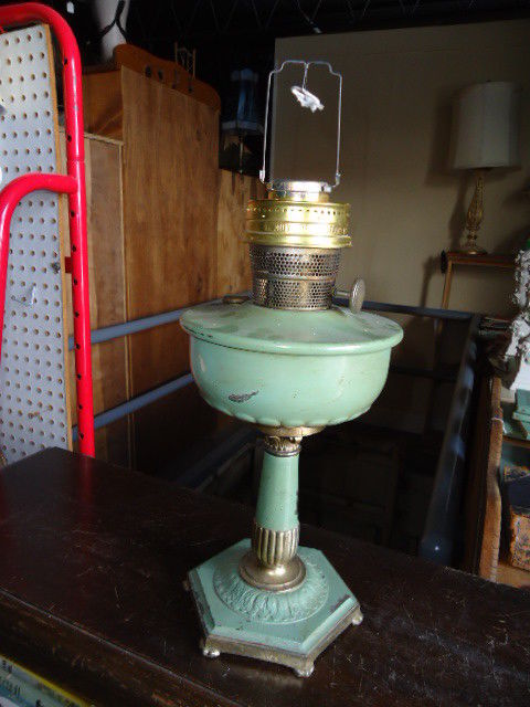 Antique Victorian Nu-Type Model B Green Metal Oil Lamp