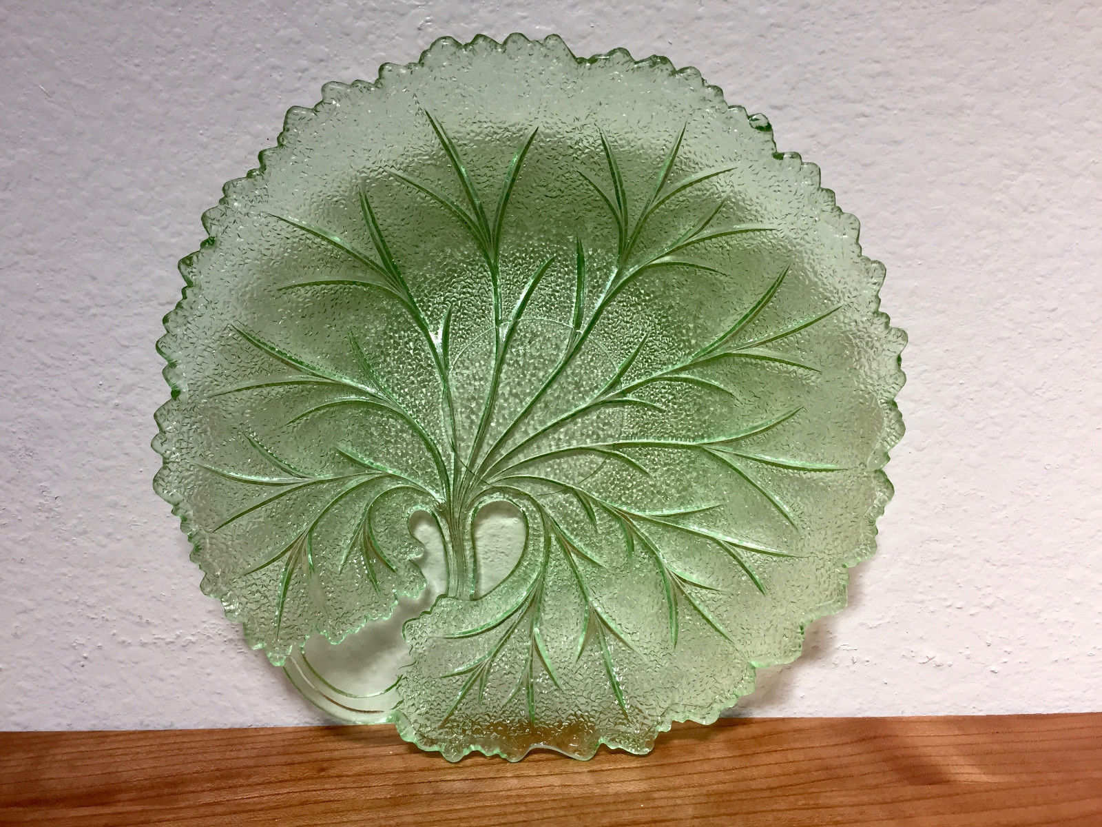 Title (ebay affiliate link): 4 vtg. Indiana depression glass LEAF~embossed~lunch/salad plates~pale green~EUC!