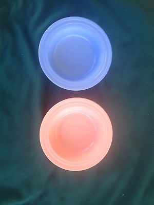 Moderntone Platonite Chartreuse Fruit Dessert Bowl Hazel Atlas Glass pink /blue
