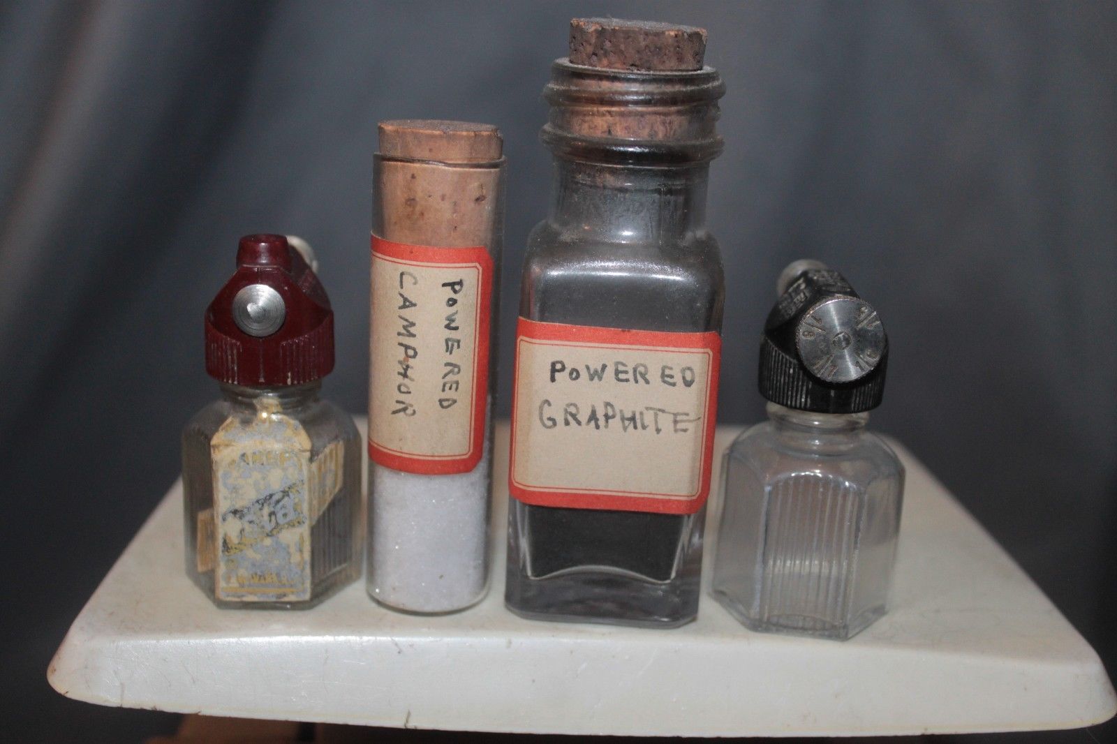Title (ebay affiliate link): 4 SMALL ANTIQUE MEDICAL DENTISTRY APOTHECARY BOTTLES 3 W LABELS CONTENTS & CORKS