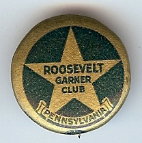 1936 ROOSEVELT - GARNER PENNSYLVANIA CLUB CELLO BUTTON