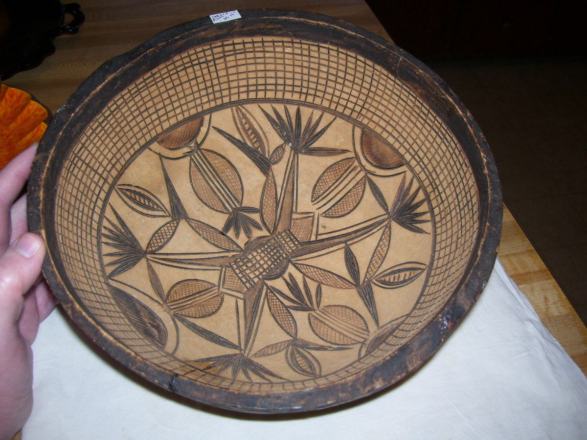 Title (ebay affiliate link): Antique Primitive Folk Art Carved Wood Bowl with Palm Trees RARE!