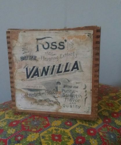 Title (ebay affiliate link): VINTAGE ADVERTISING FOSS VANILLA EXTRACT WOOD CRATE PORTLAND, MAINE