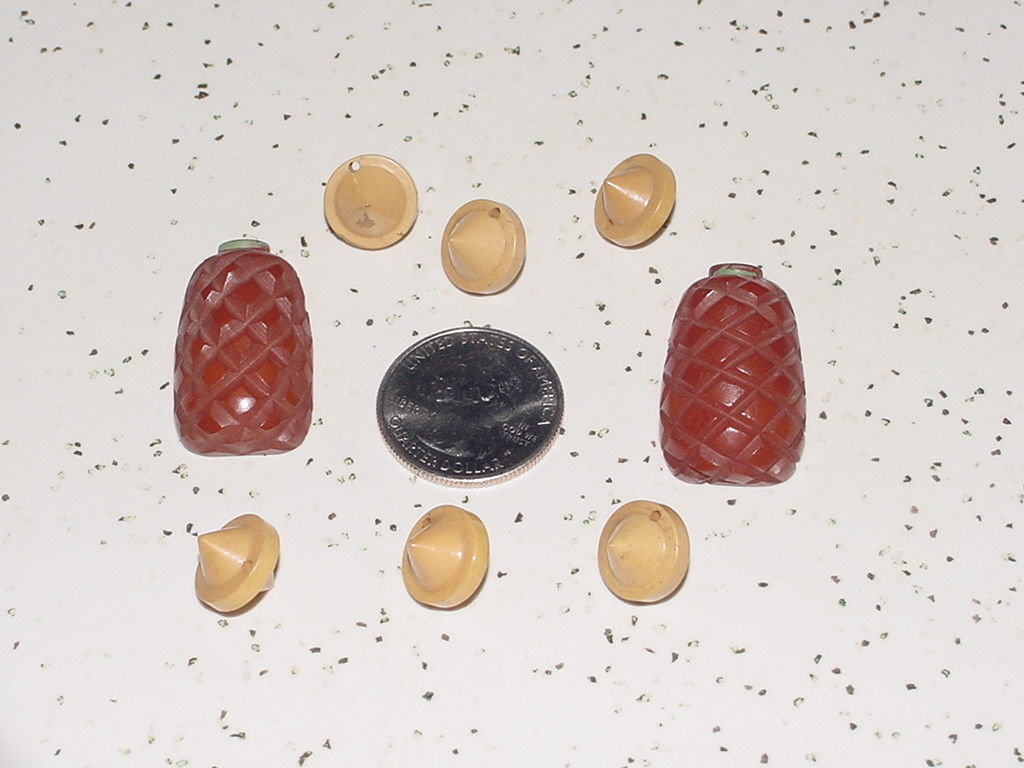 2 Bakelite Pineapple Buttons & 6 Tiny Bakelite Deep Yellow Satellite Buttons, NR