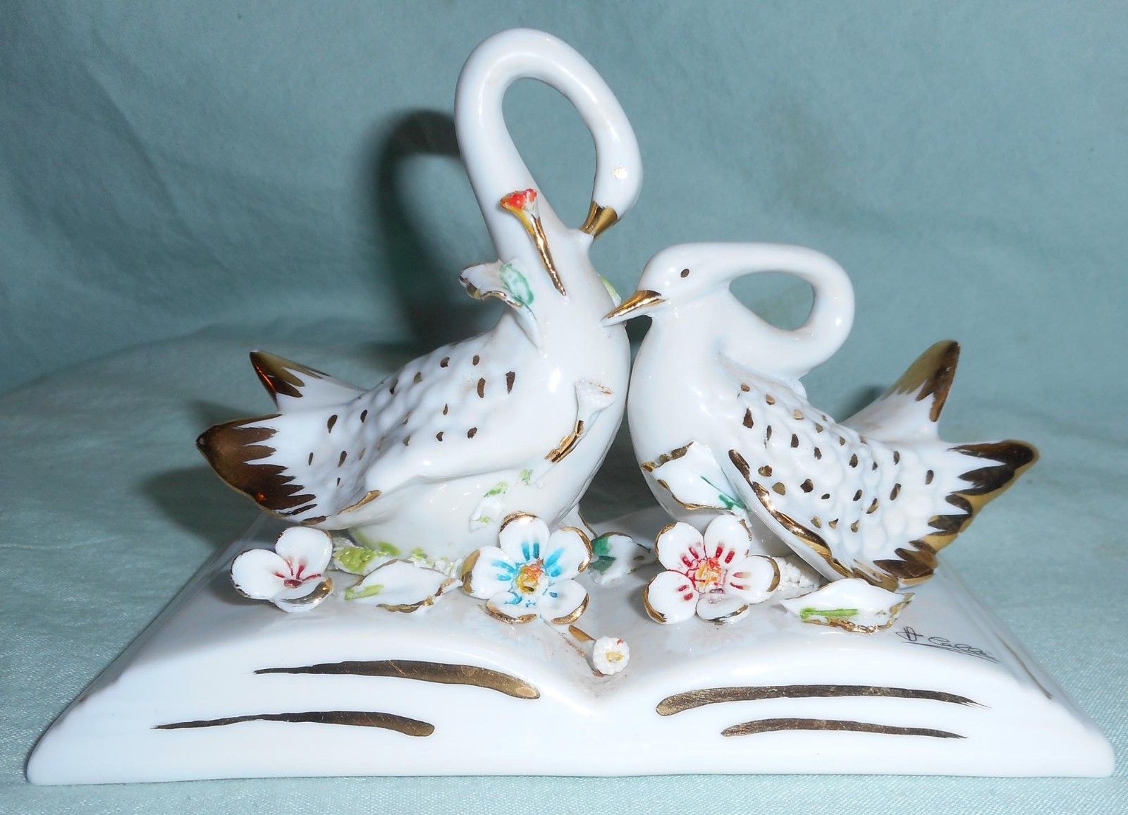 Vintage Capodimonte Figurine-2 Swans on Book-Signed A Calle-No Reserve