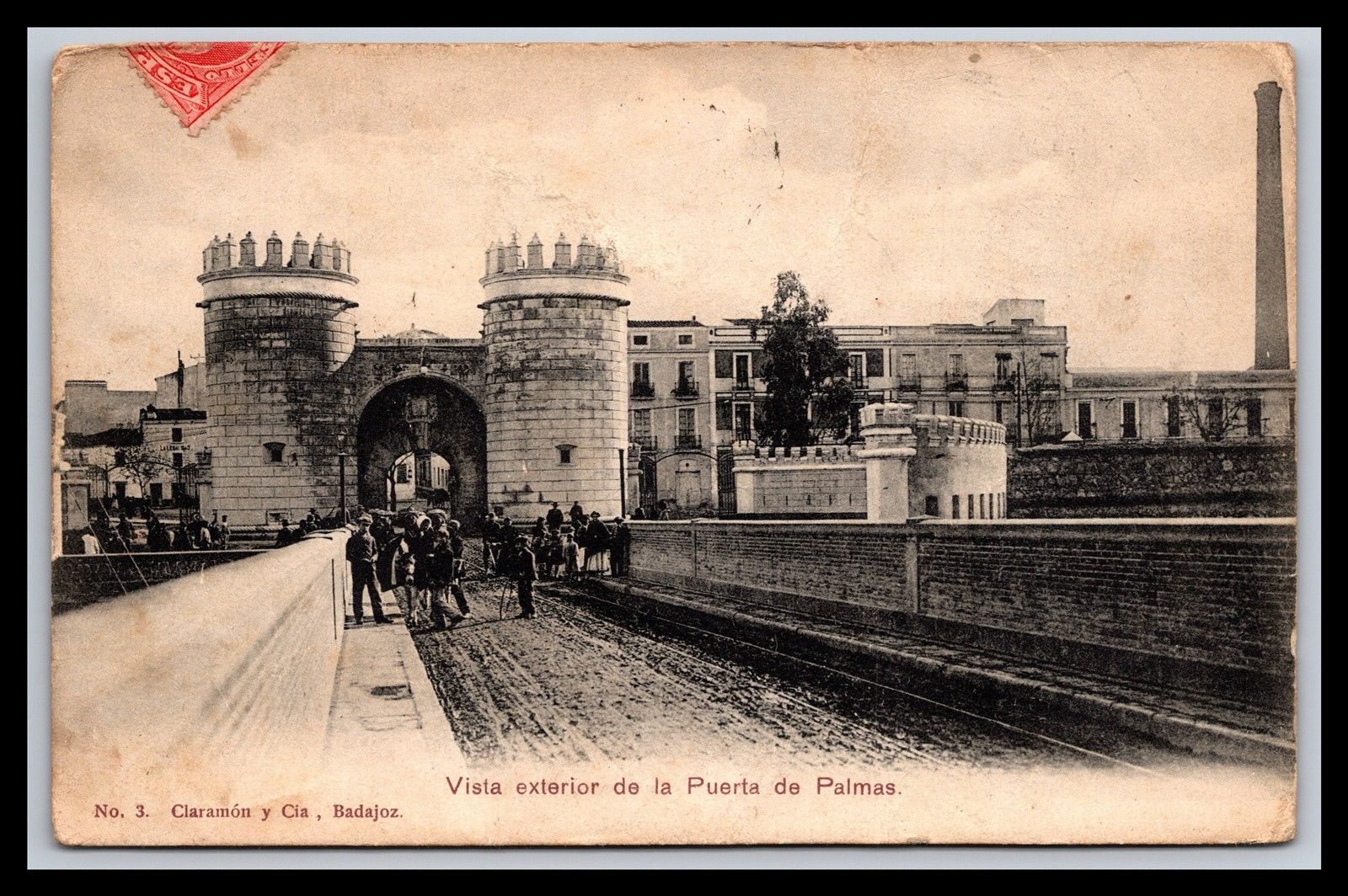OLD BADAJOZ SPAIN PUERTA DE PALMAS POSTCARD POSTALLY USED
