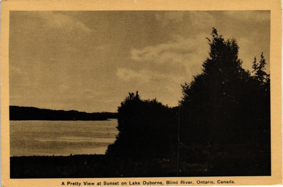 Title (ebay affiliate link): DR JIM STAMPS SUNSET LAKE DUBORNE BLIND RIVER ONTARIO CANADA VIEW POSTCARD