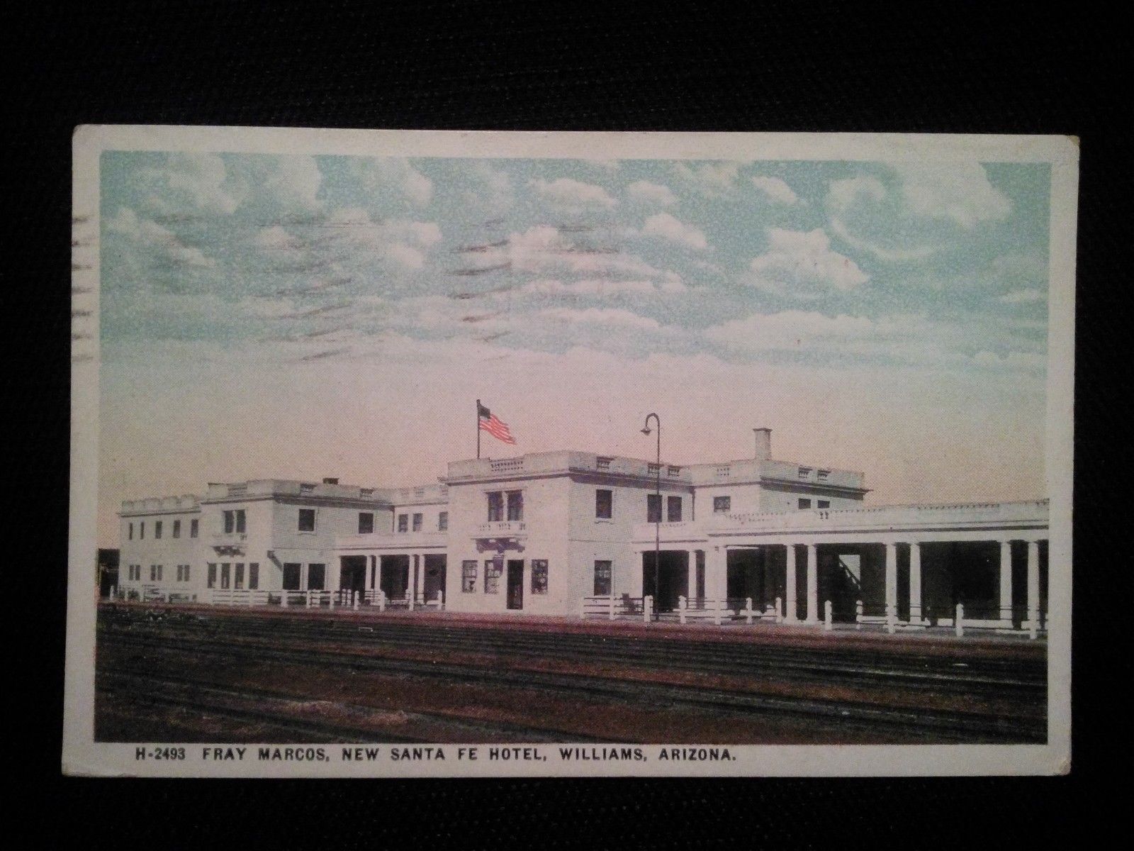 Title (ebay affiliate link): Fray Marcos, New Santa Fe Hotel, Williams, Arizona Fred Harvey
