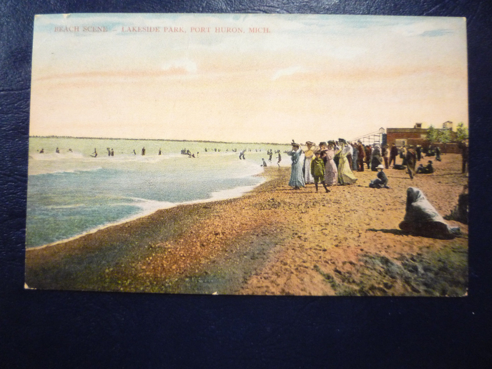 Title (ebay affiliate link): c1910 Port Huron, MI MICHIGAN Lakeside Park Beach Scene Bathers in Dresses