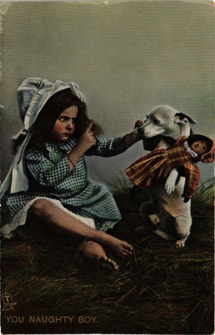 Title (ebay affiliate link): DR JIM STAMPS GIRL SCOLDING DOG YOU NAUGHTY BOY UNITED KINGDOM TOPICAL POSTCARD