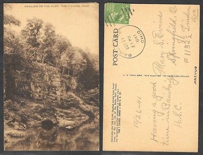 Title (ebay affiliate link): 1941 Ohio Postcard - The 7 Caves - Pavilion on the Cliffs