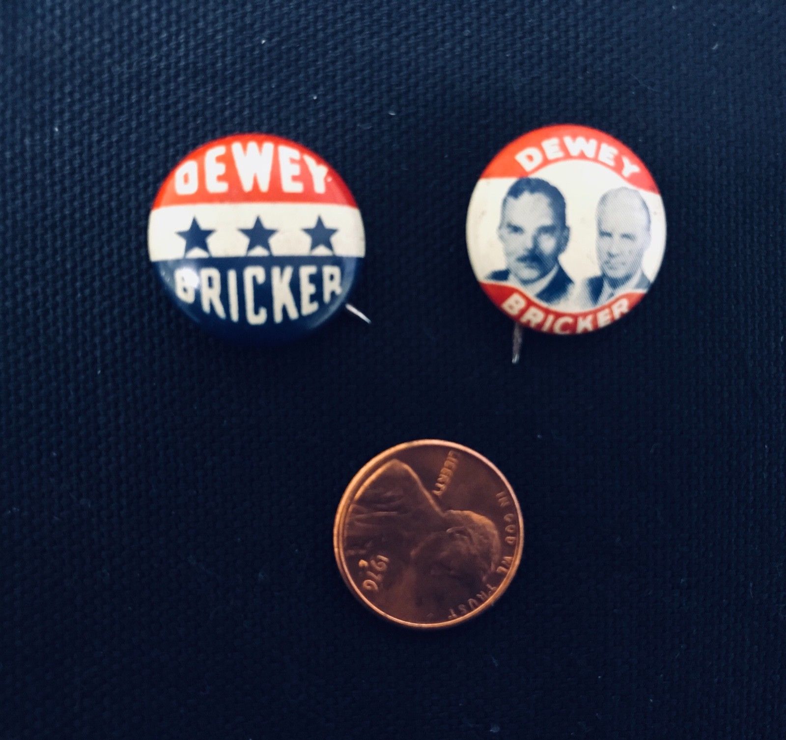Title (ebay affiliate link): Two Vintage 1944 Dewey Bricker Presidential Campaign Pinback Buttons